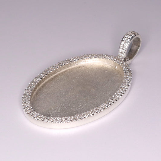 Sterling Silver 1.6ct Diamond Oval Photo Pendant 2.3"