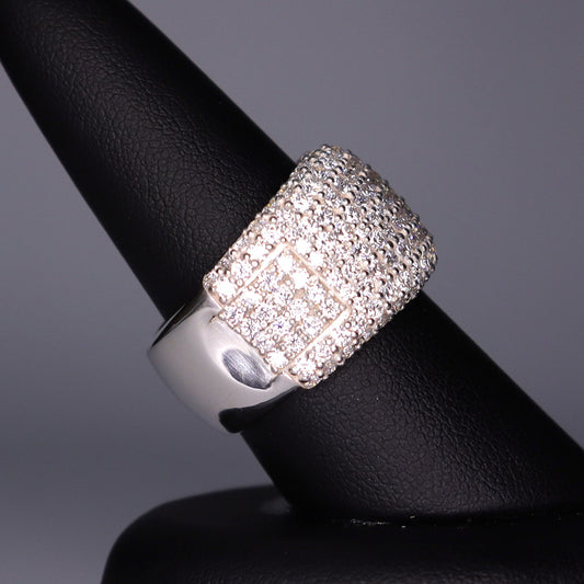 Sterling Silver 4.83ct Wide Dome Diamond Ring 15mm - Size 10